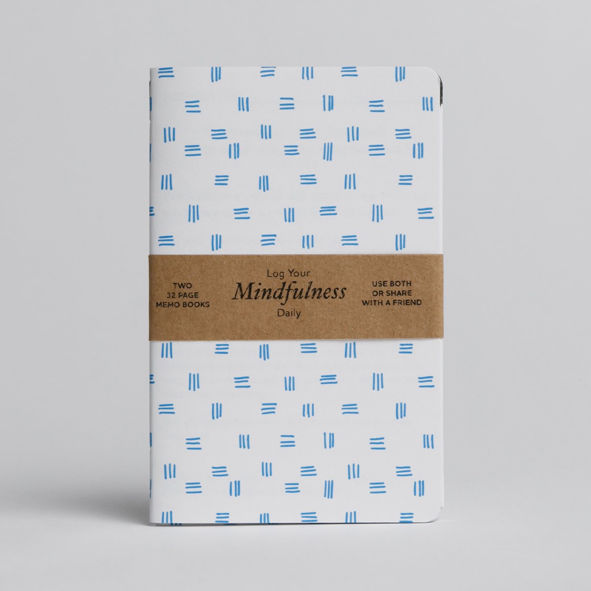 The Mindfulness Logbook featuring two 32-page custom books with writing prompts for daily mindfulness practice, designed for emotional awareness.