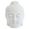 A matte white Buddha head oil burner. This item can also be used as a wax melt burner however it is advisable to consider the size and depth of the bowl when adding wax to ensure it will not overrun the edges when melted. Dimensions: H14cm x W9cm x D9cm; Material: Ceramic
