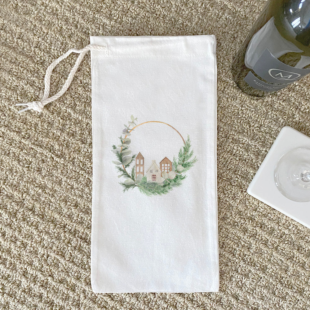 Introducing the Wood Village Wreath Canvas Wine Bag, a delightful accessory for wine enthusiasts and a perfect gift for any occasion. Made from 100% cotton canvas, this wine tote combines durability with style, ensuring that your favorite bottle of wine is presented beautifully. Whether you're attending a dinner party, a picnic, or a holiday gathering, this canvas wine bag adds a charming touch to your wine gifting experience.