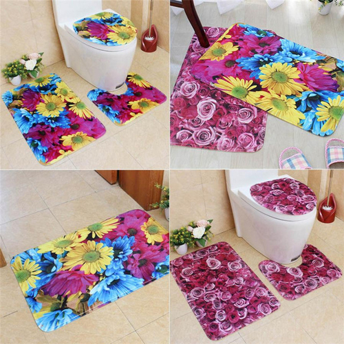 Dropship 3pcs set Big Flower colorful bathroom Carpet mat