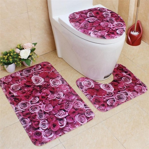 3pcs set Big Flower colorful bathroom Carpet mat