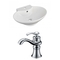 This product is a bundle (set of multiple products). This bathroom vessel sink set features a oval shape with a traditional style. This product is made for above counter installation. DIY installation instructions are included in the box. This bathroom vessel sink set is designed for a 1 hole faucet and the faucet drilling location is on the center. Comes with an overflow for safety. This bathroom vessel sink set features 1 sink. This bathroom vessel sink set is made with ceramic. The primary color of this product is white and it comes with chrome hardware. Smooth non-porous surface; prevents from discoloration and fading. Double fired and glazed for durability and stain resistance. 1.75-in. standard USA-Canada drain opening. 22.75-in. Width (left to right). 17.25-in. Depth (back to front). 7-in. Height (top to bottom). All dimensions are nominal. This product can usually be shipped out in 1 day. Quality control approved in Canada. Each box on your order is physically opened-up and inspected to make sure only the highest quality product is shipped. We take and store photos of every single quality audit of every single order we ship. You can see them when you track your order on our website. THIS PRODUCT INCLUDE(S): 1x bathroom vessel sink in white color (590) 1x bathroom sink faucet in chrome color (1779).