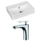 This product is a bundle (set of multiple products). This bathroom vessel sink set features a rectangle shape with a modern style. This product is made for above counter installation. DIY installation instructions are included in the box. This bathroom vessel sink set is designed for a 1 hole faucet and the faucet drilling location is on the center. Comes with an overflow for safety. This bathroom vessel sink set features 1 sink. This bathroom vessel sink set is made with ceramic. The primary color of this product is white and it comes with chrome hardware. Smooth non-porous surface; prevents from discoloration and fading. Double fired and glazed for durability and stain resistance. 1.75-in. standard USA-Canada drain opening. 19.75-in. Width (left to right). 13.75-in. Depth (back to front). 6.89-in. Height (top to bottom). All dimensions are nominal. This product can usually be shipped out in 1 day. Quality control approved in Canada. Each box on your order is physically opened-up and inspected to make sure only the highest quality product is shipped. We take and store photos of every single quality audit of every single order we ship. You can see them when you track your order on our website. THIS PRODUCT INCLUDE(S): 1x bathroom vessel sink in white color (1328) 1x bathroom sink faucet in chrome color (1782).