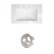 This product is a bundle (set of multiple products). This ceramic top set features a rectangle shape with a transitional style. This product is made for drop in installation. DIY installation instructions are included in the box. This ceramic top set is designed for a 3h8-in. faucet and the faucet drilling location is on the center. Comes with an overflow for safety. This ceramic top set features 1 sink. This ceramic top set is made with ceramic. CSA certified. Most city inspectors require the use of certified products to get approval. The primary color of this product is white and it comes with brushed nickel hardware. Smooth non-porous surface; prevents from discoloration and fading. Double fired and glazed for durability and stain resistance. 1.75-in. standard USA-Canada drain opening. 24-in. Width (left to right). 18-in. Depth (back to front). 7.25-in. Height (top to bottom). All dimensions are nominal. This product can usually be shipped out in 1 day. Quality control approved in Canada. Each box on your order is physically opened-up and inspected to make sure only the highest quality product is shipped. We take and store photos of every single quality audit of every single order we ship. You can see them when you track your order on our website. THIS PRODUCT INCLUDE(S): 1x ceramic top in white color (18100) 1x overflow cap in brushed nickel color (20335).