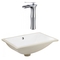 This product is a bundle (set of multiple products). This bathroom undermount sink set features a rectangle shape with a transitional style. This product is made for undermount installation. DIY installation instructions are included in the box. Comes with an overflow for safety. This bathroom undermount sink set features 1 sink. The color of the undermount sink is white. This bathroom undermount sink set is made with ceramic. CSA certified. Most city inspectors require the use of certified products to get approval. The primary color of this product is white and it comes with chrome hardware. Smooth non-porous surface; prevents from discoloration and fading. Double fired and glazed for durability and stain resistance. 1.75-in. standard USA-Canada drain opening. Sink cut-out included in the box. It is highly recommended that you wait for the sink to physically arrive before proceeding with any cut-outs. 20.75-in. Width (left to right). 14.35-in. Depth (back to front). 8.25-in. Height (top to bottom). All dimensions are nominal. This product can usually be shipped out in 1 day. Quality control approved in Canada. Each box on your order is physically opened-up and inspected to make sure only the highest quality product is shipped. We take and store photos of every single quality audit of every single order we ship. You can see them when you track your order on our website. THIS PRODUCT INCLUDE(S): 1x bathroom sink faucet in chrome color (16749) 1x bathroom undermount sink in white color (18116).