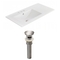 This product is a bundle (set of multiple products). This ceramic top set features a rectangle shape with a transitional style. This product is made for drop in installation. DIY installation instructions are included in the box. This ceramic top set is designed for a 3h4-in. faucet and the faucet drilling location is on the left. Comes with an overflow for safety. This ceramic top set features 1 sink. This ceramic top set is made with ceramic. The primary color of this product is white and it comes with brushed nickel hardware. Smooth non-porous surface; prevents from discoloration and fading. Double fired and glazed for durability and stain resistance. 1.75-in. standard USA-Canada drain opening. Constructed with lead-free brass ensuring strength and durability. Solid bulky brass feel (not cheap and light). 35.5-in. Width (left to right). 18.25-in. Depth (back to front). 7.75-in. Height (top to bottom). All dimensions are nominal. This product can usually be shipped out in 1 day. Quality control approved in Canada. Each box on your order is physically opened-up and inspected to make sure only the highest quality product is shipped. We take and store photos of every single quality audit of every single order we ship. You can see them when you track your order on our website. THIS PRODUCT INCLUDE(S): 1x ceramic top in white color (1317) 1x bathroom sink drain in brushed nickel color (20320).