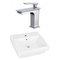 This product is a bundle (set of multiple products). This bathroom vessel sink set features a rectangle shape with a modern style. This product is made for semi-recessed installation. DIY installation instructions are included in the box. This bathroom vessel sink set is designed for a 1 hole faucet and the faucet drilling location is on the center. Comes with an overflow for safety. This bathroom vessel sink set features 1 sink. This bathroom vessel sink set is made with ceramic. CSA certified. Most city inspectors require the use of certified products to get approval. The primary color of this product is white and it comes with chrome hardware. Smooth non-porous surface; prevents from discoloration and fading. Double fired and glazed for durability and stain resistance. 1.75-in. standard USA-Canada drain opening. 20.5-in. Width (left to right). 18.5-in. Depth (back to front). 6.75-in. Height (top to bottom). All dimensions are nominal. This product can usually be shipped out in 1 day. Quality control approved in Canada. Each box on your order is physically opened-up and inspected to make sure only the highest quality product is shipped. We take and store photos of every single quality audit of every single order we ship. You can see them when you track your order on our website. THIS PRODUCT INCLUDE(S): 1x bathroom sink faucet in chrome color (16750) 1x bathroom vessel sink in white color (18080).