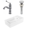 This product is a bundle (set of multiple products). This bathroom vessel sink set features a rectangle shape with a modern style. This product is made for above counter installation. DIY installation instructions are included in the box. This bathroom vessel sink set is designed for a 1 hole faucet and the faucet drilling location is on the center. Comes with an overflow for safety. This bathroom vessel sink set features 1 sink. This bathroom vessel sink set is made with ceramic. The primary color of this product is white and it comes with chrome hardware. Constructed with lead-free brass ensuring strength and durability. Solid bulky brass feel (not cheap and light). Smooth non-porous surface; prevents from discoloration and fading. Double fired and glazed for durability and stain resistance. 1.75-in. standard USA-Canada drain opening. 19-in. Width (left to right). 9.75-in. Depth (back to front). 5.75-in. Height (top to bottom). All dimensions are nominal. This product can usually be shipped out in 1 day. Quality control approved in Canada. Each box on your order is physically opened-up and inspected to make sure only the highest quality product is shipped. We take and store photos of every single quality audit of every single order we ship. You can see them when you track your order on our website. THIS PRODUCT INCLUDE(S): 1x bathroom sink faucet in chrome color (1790) 1x bathroom sink drain in chrome color (1795) 1x bathroom vessel sink in white color (11032).