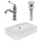 This product is a bundle (set of multiple products). This bathroom vessel sink set features a rectangle shape with a modern style. This product is made for above counter installation. DIY installation instructions are included in the box. This bathroom vessel sink set is designed for a 1 hole faucet and the faucet drilling location is on the center. Comes with an overflow for safety. This bathroom vessel sink set features 1 sink. This bathroom vessel sink set is made with ceramic. The primary color of this product is white and it comes with chrome hardware. Constructed with lead-free brass ensuring strength and durability. Solid bulky brass feel (not cheap and light). Smooth non-porous surface; prevents from discoloration and fading. Double fired and glazed for durability and stain resistance. 1.75-in. standard USA-Canada drain opening. 19.5-in. Width (left to right). 16-in. Depth (back to front). 4.25-in. Height (top to bottom). All dimensions are nominal. This product can usually be shipped out in 1 day. Quality control approved in Canada. Each box on your order is physically opened-up and inspected to make sure only the highest quality product is shipped. We take and store photos of every single quality audit of every single order we ship. You can see them when you track your order on our website. THIS PRODUCT INCLUDE(S): 1x bathroom sink faucet in chrome color (1790) 1x bathroom sink drain in chrome color (1795) 1x bathroom vessel sink in white color (20284).