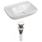 This product is a bundle (set of multiple products). This bathroom vessel sink set features a rectangle shape with a traditional style. This product is made for above counter installation. DIY installation instructions are included in the box. This bathroom vessel sink set is designed for a 1 hole faucet and the faucet drilling location is on the center. This bathroom vessel sink set features 1 sink. This bathroom vessel sink set is made with ceramic. The primary color of this product is white and it comes with white hardware. Smooth non-porous surface; prevents from discoloration and fading. Double fired and glazed for durability and stain resistance. 1.75-in. standard USA-Canada drain opening. Constructed with lead-free brass ensuring strength and durability. Solid bulky brass feel (not cheap and light). 23.5-in. Width (left to right). 17.25-in. Depth (back to front). 5-in. Height (top to bottom). All dimensions are nominal. This product can usually be shipped out in 1 day. Quality control approved in Canada. Each box on your order is physically opened-up and inspected to make sure only the highest quality product is shipped. We take and store photos of every single quality audit of every single order we ship. You can see them when you track your order on our website. THIS PRODUCT INCLUDE(S): 1x bathroom vessel sink in white color (599) 1x bathroom sink drain in white color (20323).