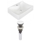 This product is a bundle (set of multiple products). This bathroom vessel sink set features a rectangle shape with a modern style. This product is made for wall mount installation. DIY installation instructions are included in the box. This bathroom vessel sink set is designed for a 1 hole faucet and the faucet drilling location is on the wall mount. This bathroom vessel sink set features 1 sink. This bathroom vessel sink set is made with ceramic. The primary color of this product is white and it comes with white hardware. Smooth non-porous surface; prevents from discoloration and fading. Double fired and glazed for durability and stain resistance. 1.75-in. standard USA-Canada drain opening. Constructed with lead-free brass ensuring strength and durability. Solid bulky brass feel (not cheap and light). 21.5-in. Width (left to right). 15.75-in. Depth (back to front). 5-in. Height (top to bottom). All dimensions are nominal. This product can usually be shipped out in 1 day. Quality control approved in Canada. Each box on your order is physically opened-up and inspected to make sure only the highest quality product is shipped. We take and store photos of every single quality audit of every single order we ship. You can see them when you track your order on our website. THIS PRODUCT INCLUDE(S): 1x bathroom vessel sink in white color (1733) 1x bathroom sink drain in white color (20323).