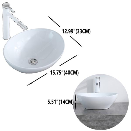 Do you want a clean and beautiful sink? Now I recommend a Bathroom Above Counter Egg Shape Oval Bowl Ceramic Vessel Vanity Sink Art Basin - White Porcelain - with Pop Up Drain Stopper. With bright glaze, delicate, easy to clean. Its smooth lines, curved edges, smooth surface, convenient and safe to use, easy to clean. High quality ceramic, seamless texture, not easy to damage. Suitable for home and office space. Such a universal quality essential, what do you hesitate for? Hurry and place an order!