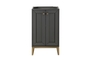 The Chianti 20-in. Vanity by James Martin Vanities is a classic shape with a transitional style. The body of the product is crafted from solid hardwood with a mineral grey finish that gives the piece a clean, crisp look. The cabinet stands on a brushed stainless-steel base that is finished in a sleek radiant gold finish and comes with height adjustable levelers. You will find ample storage space in the roomy cabinet that is ready to handle all your bathroom essentials. Each cabinet has reversible door panels on the 20-in you have your choice of either the normal mineral grey or the Lino Bianco fabric pattern.