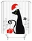 Black and white Christmas spirit shower curtains design. Adorable black drawing cat reaches you with a present, isn’t it sweet? Cute print for cat lovers who would like to décor their bathroom for the holidays but still keep it a cats lover home. The black and white make it easy to fit decoration and highlight the Christmas motifs.