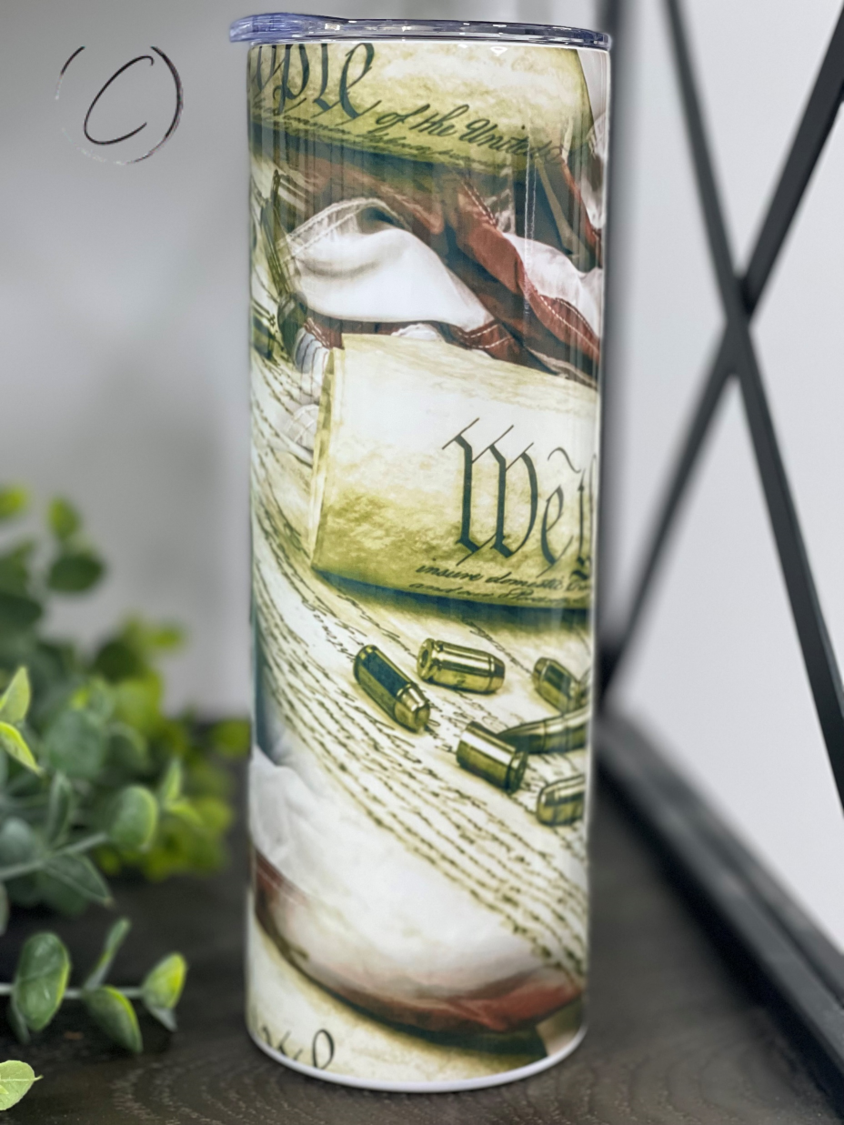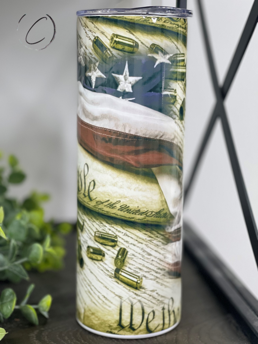 By choosing the We The People 20oz Skinny Tumbler, you are making an eco-friendly choice. The reusable straw and durable design help reduce the need for disposable cups and straws, contributing to a more sustainable lifestyle. Enjoy your beverages while being kind to the planet!