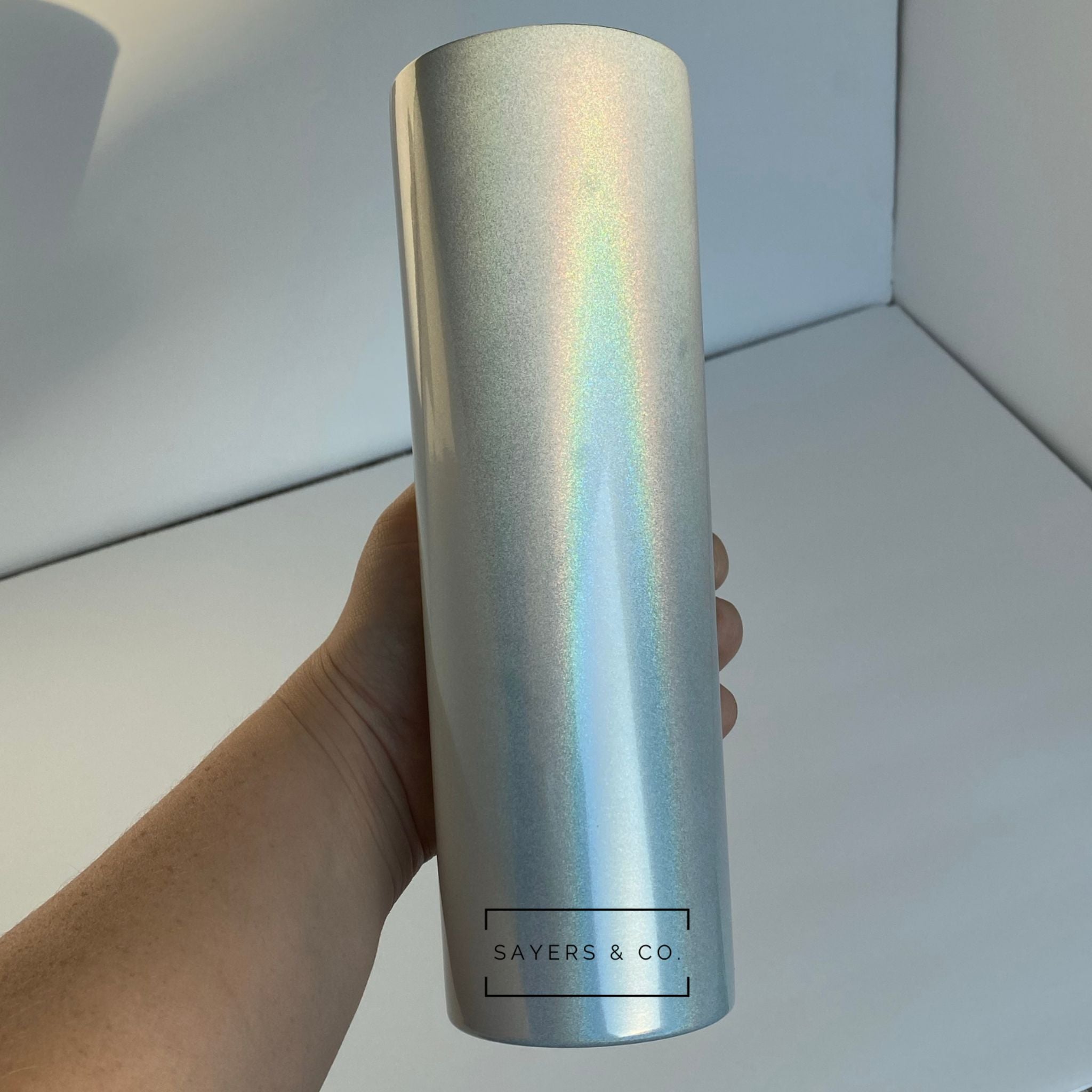 Introducing the 30oz White Glitter Skinny Straight Sublimation Blank Tumbler, a must-have for anyone looking to create custom drinkware. This tumbler is designed specifically for sublimation, allowing you to personalize it with your favorite images, logos, or designs. With its stunning white holographic glitter finish, this tumbler not only serves a practical purpose but also adds a touch of elegance to your drinkware collection.
