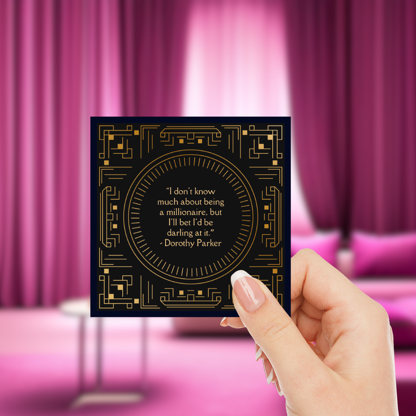 Each sticker in this bundle features witty quotes and charming designs that resonate with those who appreciate the Art Deco aesthetic. For instance, one of the standout stickers reads, "I Don't Know Much About Being A Millionaire, But I'll Bet I'd Be Darling At It" by the iconic Dorothy Parker. This quote captures a playful spirit that is sure to bring a smile to anyone's face.