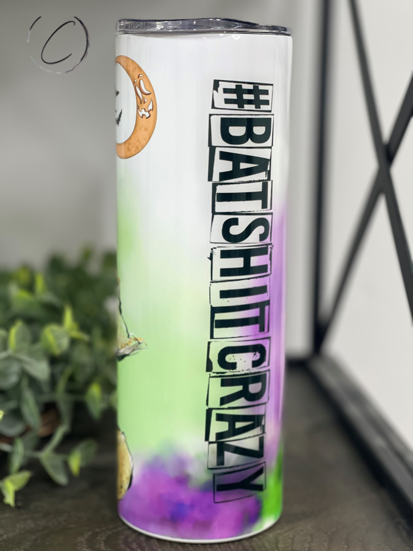 In summary, the #BatShitCrazy 20oz Skinny Tumbler is more than just a drink container; it’s a lifestyle accessory that combines style, functionality, and sustainability. With its durable design, insulation properties, and included straw, this tumbler is perfect for anyone looking to elevate their drinking experience. Make a statement with the #BatShitCrazy tumbler and enjoy your favorite beverages like never before!