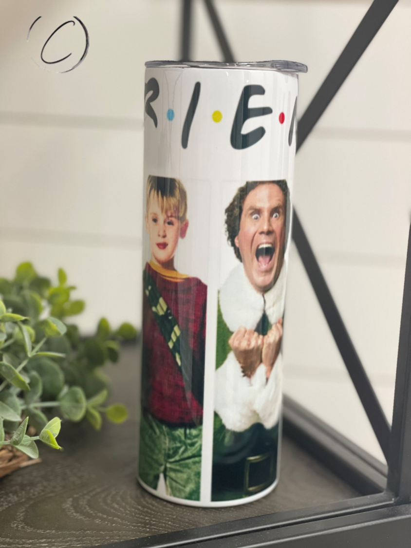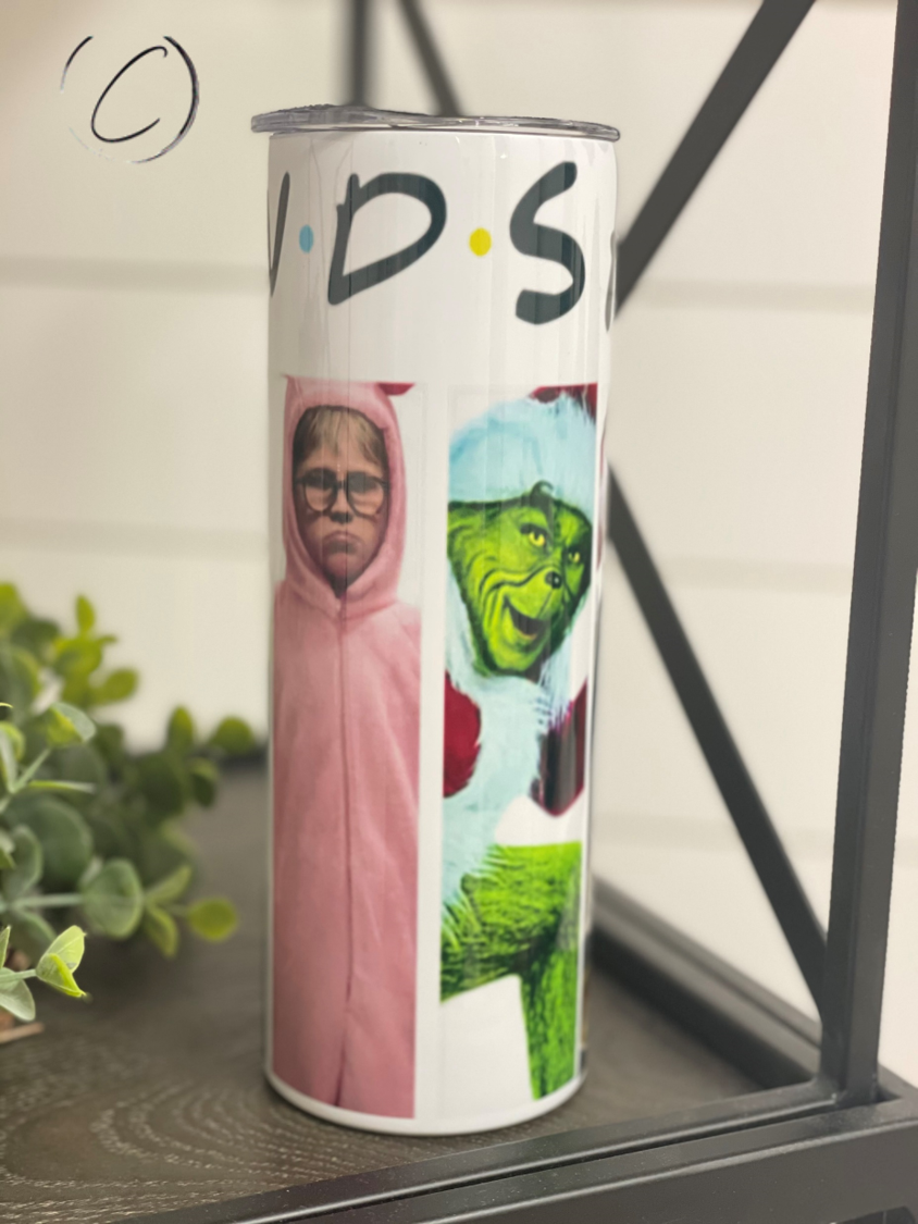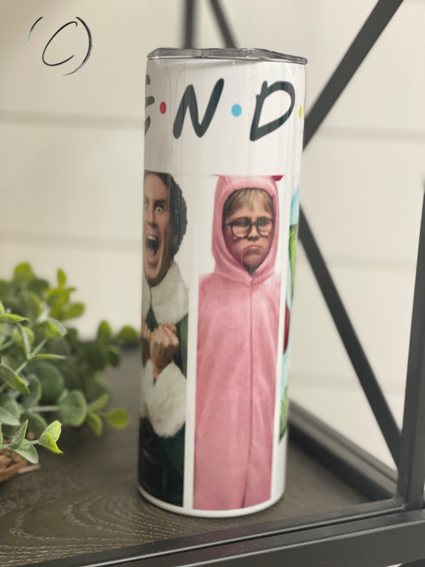 Introducing the Christmas F*R*I*E*N*D*S 20oz Skinny Tumbler, a must-have for any fan of the iconic TV show. This tumbler is perfect for enjoying your favorite holiday beverages while showcasing your love for Friends. With a generous 20oz capacity, it’s designed to keep your drinks hot or cold for hours, making it ideal for both winter warmers and refreshing summer sips.
