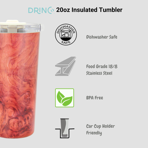 DRINCO® Seattle 20oz Insulated Tumbler Leakproof w/straw-Walnut