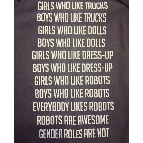 Introducing the GetBullish Robot Gender Roles Feminist Baby Bodysuit in Gray, a unique and playful addition to your baby's wardrobe. This bodysuit is designed to challenge traditional gender roles and promote individuality from a young age. The front of the bodysuit features a fun and thought-provoking message that reads: