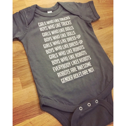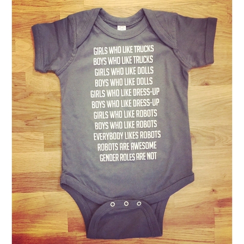 Dropship GetBullish Robot Gender Roles Feminist Baby Bodysuit in Gray