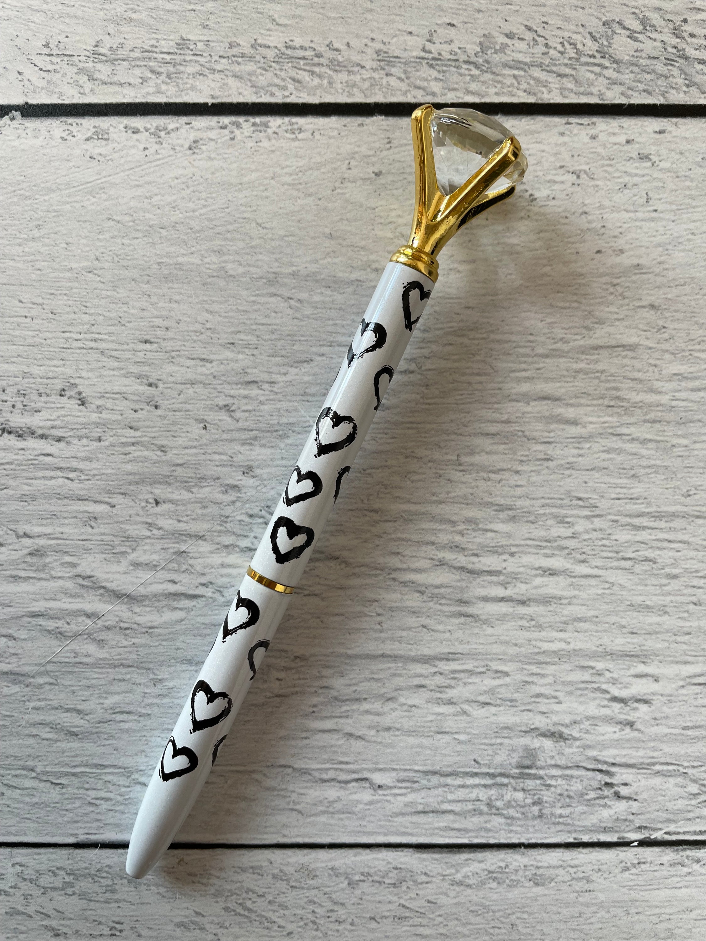The Heart Gem Pen features a beautiful crown top design that is sure to catch the eye. The black and white heart gem adds a unique flair, making it a perfect accessory for any stationery collection. The pen is designed to be both stylish and practical, ensuring that you can express your personality while enjoying a smooth writing experience.