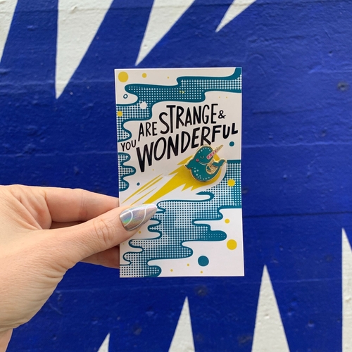 Each pin comes beautifully packaged on a double-sided card that reads “You Are Strange & Wonderful.” This thoughtful design not only showcases the pin but also includes a blank space on the back for a handwritten note, making it an ideal gift for friends, family, or even yourself. Surprise someone special with a unique gift that celebrates their individuality.