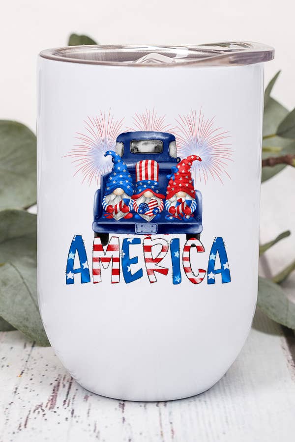 Introducing the Patriotic Blue Truck Gnomes America Wine Cup Tumbler, a delightful addition to your drinkware collection that embodies the spirit of freedom and celebration. This 12 oz stainless steel wine tumbler is perfect for enjoying your favorite beverages while showcasing your love for America. Whether you're sipping wine, iced tea, or any refreshing drink, this tumbler is designed to keep your drinks at the perfect temperature.