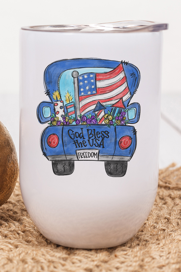 Introducing the Patriotic God Bless American Blue Truck Wine Cup Tumbler, a perfect blend of style and functionality for wine lovers and patriots alike. This 12 oz stainless steel wine tumbler is designed to keep your beverages at the perfect temperature while showcasing your love for America. Whether you're celebrating July 4th, Mother's Day, or simply enjoying a glass of wine at home, this tumbler is an ideal companion.