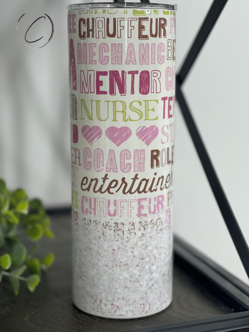 Each Roles Of Mom tumbler comes equipped with a reusable straw, making it easy to sip your favorite beverages on the go. Whether you’re enjoying iced coffee, smoothies, or water, the included straw adds convenience to your hydration routine. Plus, the tumbler fits perfectly in most car cup holders, making it ideal for travel.
