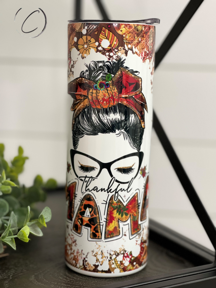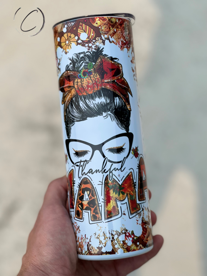 Crafted from durable materials, the Thankful Mama tumbler is designed to withstand the rigors of daily use. Unlike other tumblers that may use vinyl or stickers, the design on this tumbler is part of the cup itself, ensuring that it won't peel or fade over time. This high-quality construction means you can enjoy your favorite beverages without worrying about wear and tear.