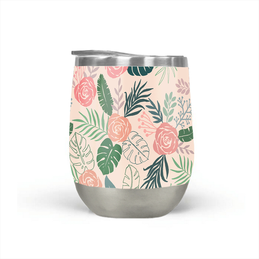 Introducing the Tropical Floral Stemless Wine Tumbler, a must-have accessory for wine lovers who enjoy sipping their favorite beverages in style. This beautifully designed tumbler is perfect for outdoor gatherings, summer parties, or simply relaxing at home. With a capacity of 12 oz, it is the ideal size for serving your favorite wines, cocktails, or even iced beverages.