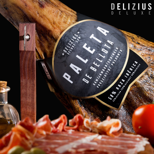 Enjoy the unique and exquisite flavour of Acorn-fed Iberico Shoulder Delizius Deluxe 5-5.5 Kg ! Discover a wide range of Delizius Deluxe shoulders and hams which are characterised by their extra quality, their optimal curing period and their exquisite and unique flavour, which will delight the most demanding of palates!!