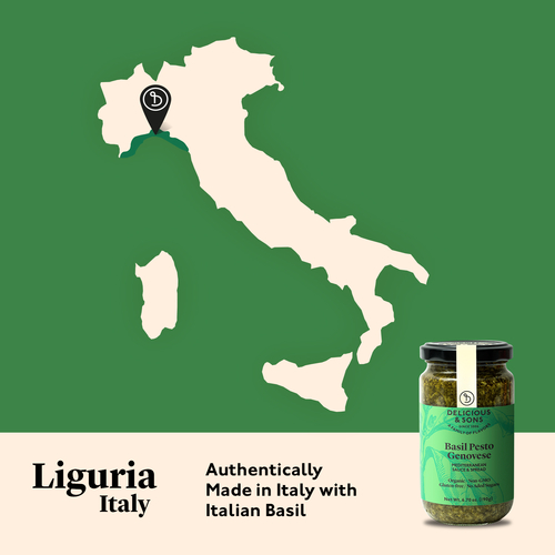We make this classic basil pesto sauce following the traditional recipe with authentic organic Italian basil and certified Parmesan cheese. Pesto Genovese, known simply as “green pesto” or basil pesto, combines well with an infinite number of dishes such as pasta, sandwiches, vegetables, salads, as a dip or appetizer with meats, chicken, and fish. And most simply, as a pesto spread enjoyed with a piece of crusty bread.
