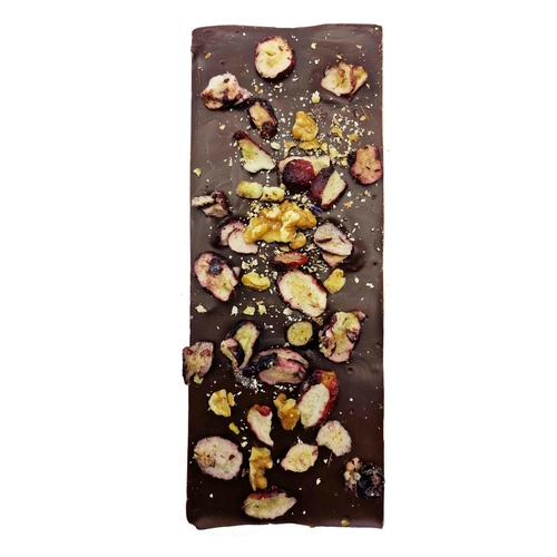 Handmade by us in Austria with specially selected fruits in a beautiful packaging. Ritonka GOURMET SELECTION dark chocolate grapes, walnut. Net weight: 130g