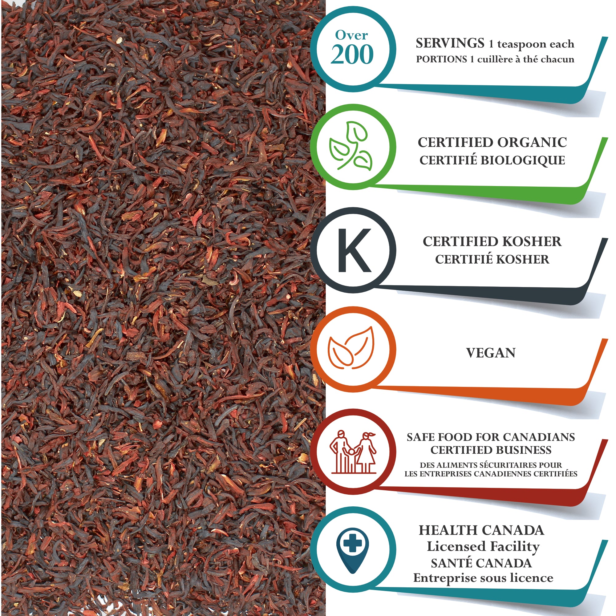 We take pride in offering high-quality products that meet strict standards. Our organic hibiscus tea flowers are certified organic and kosher, ensuring that you receive a product that is not only delicious but also ethically sourced. Additionally, our hibiscus flowers are non-irradiated, preserving their natural properties and flavor.
