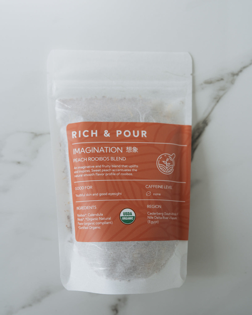 In summary, the Imagination Peach Rooibos Blend is a must-try for anyone seeking a flavorful, caffeine-free herbal tea. With its organic ingredients, delightful flavor, and commitment to sustainability, this blend is sure to become a favorite in your tea collection.