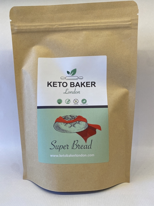 fewer carbohydrates than wheat bread ♥ Perfect for breakfast, dinner or as a snack ♥ High in protein & fibre, gluten-free, 100% organic ♥ Contents: 250g Bread Baking Mix (makes 1 loaf of bread of approx. 500g) Ingredients: Chia seeds, hemp seed protein, psyllium seed husk powder, baking powder, sea salt. All raw materials come from controlled organic cultivation. Preparation & Tips Mix & form. In a mixing bowl, mix 250 g Keto Baker London baking mixture with 300ml of sparkling water and mix / knead thoroughly. Let it rest for 15 minutes, form a loaf of bread (or six bread rolls) and score it (if you wish). Preheat. Preheat the oven to 190°C fan-assisted. Baking. Bake the bread for 60 minutes (30 minutes for rolls) on the oven rack with baking paper. Cool down. Let the bread cool down completely and then cut into it. Enjoy with spreads, in sandwiches or on its own. |