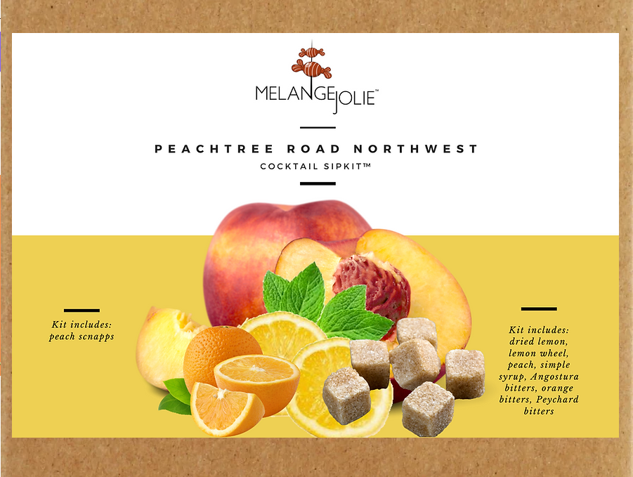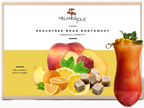 Introducing the Mélange Jolie Peachtree Road Northwest Cocktail SipKit™, a unique cocktail kit that captures the essence of Atlanta's vibrant culture. This SipKit™ is designed for cocktail enthusiasts who appreciate the art of mixology and want to recreate the flavors of the city in the comfort of their own home. With this kit, you can enjoy a refreshing cocktail experience that takes you on a journey from Midtown to Buckhead, all while savoring the delightful taste of peaches.