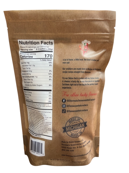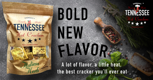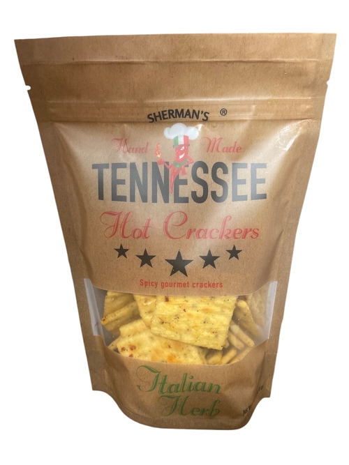 Indulge in the savory crunch of Sherman Tennessee Hot Crackers Italian Herb Flavor. Perfect for snacking, charcuterie boards, appetizers, soups, and much more!