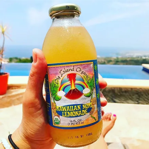 Ingredients: filtered water, organic lemon juice, organic agave nectar, organic Hawaiian noni juice.