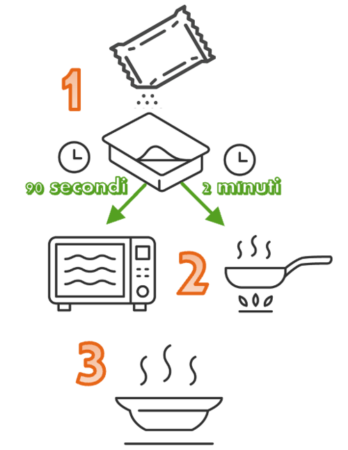 You can enjoy Italian dishes with only 90 seconds in the microwave, without preservatives and can be kept at room temperature for up to 24 months. At home, in the office, in a camper, on a boat, in ...