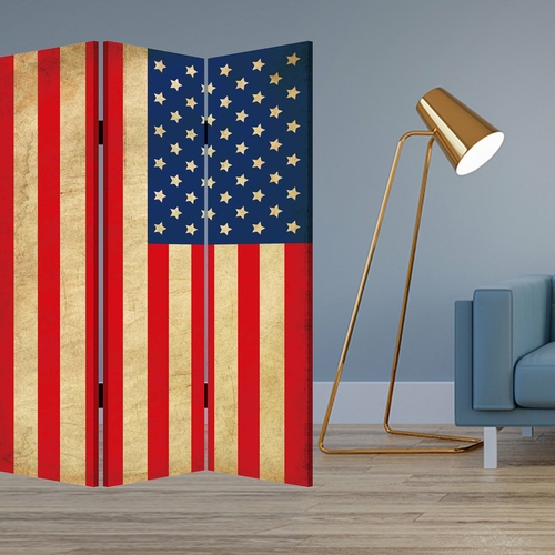 The screen features a beautiful canvas print of complementary images on each side, making it a versatile addition to any room. Whether you want to use it as a backdrop for your living room or as a stylish divider in your office, this screen will add an inspiring flair to your decor. The multi-color design captures the essence of the American flag, making it a patriotic statement piece that resonates with many.