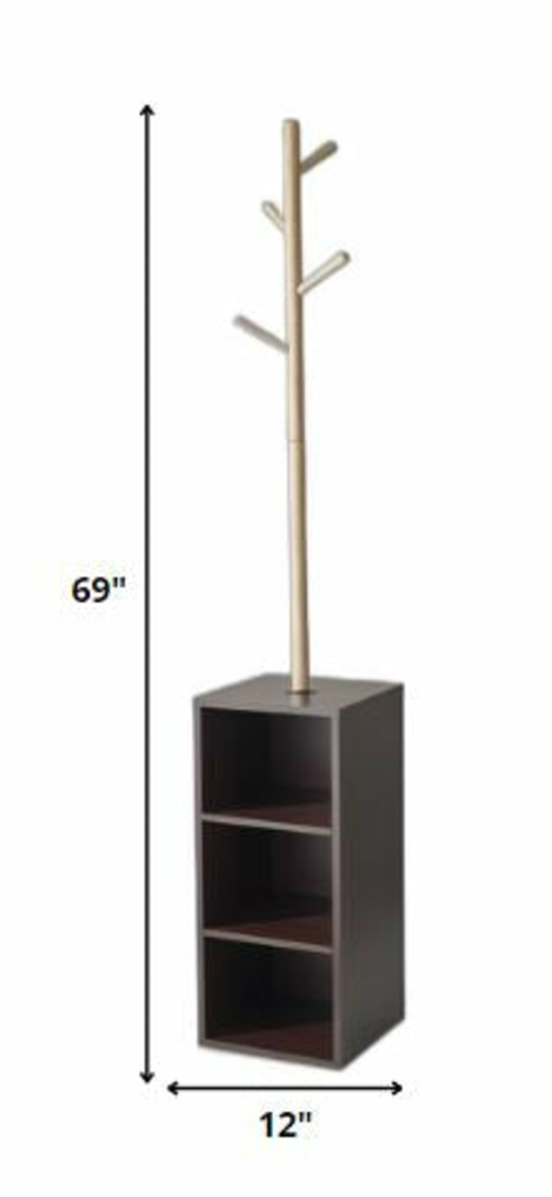 Introducing the Walnut Storage Coat Rack, a perfect blend of style and functionality designed to enhance your entryway or small space. Measuring 12 inches in width, 12 inches in depth, and standing tall at 69 inches, this coat rack is an ideal solution for keeping your belongings organized while adding a touch of elegance to your home decor.