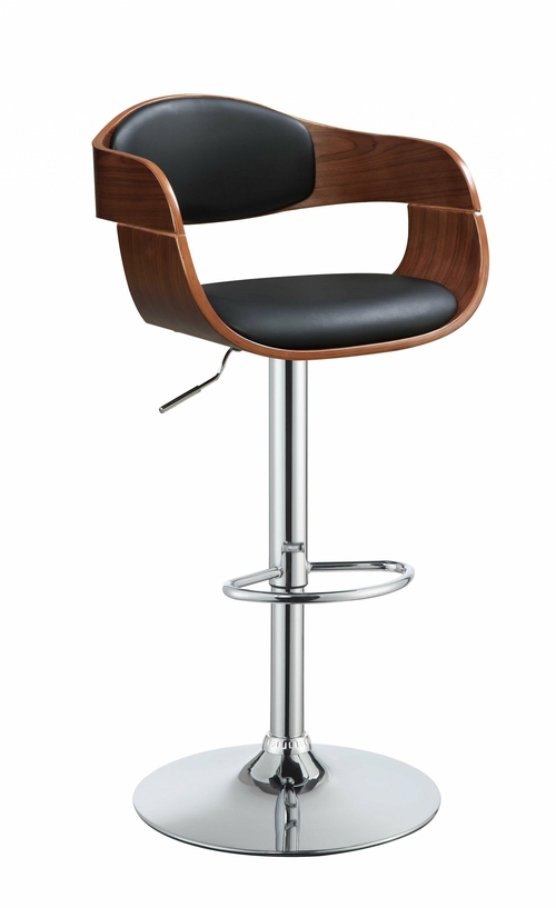 Introducing our stunning 19 inches x 20 inches x 36 inches black and walnut adjustable stool, a perfect blend of elegance and functionality. This adjustable stool is designed to be the centerpiece of your bar area, offering both style and comfort. The beautiful walnut finish of the curved backrest pairs perfectly with the black padded faux leather cushion, ensuring that you and your guests will enjoy sitting in it for hours.