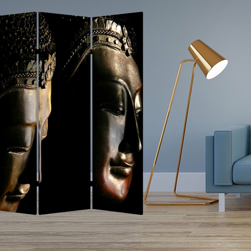 Transform your living space with the stunning 1inches x 48inches x 72inches Multi Color Wood Canvas Buddha Screen. This exquisite three-panel screen is not only a functional room divider but also a captivating piece of art that adds a touch of elegance and sophistication to any room. Crafted with a robust structure and featuring sophisticated canvas printing, this screen is designed to impress.
