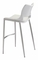 A stylish white leatherette bar chair with a brushed stainless steel frame and curved footrest, perfect for modern interiors.