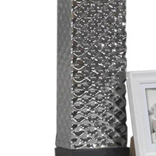Dimensions: 23 inches in height, 15 inches in depth, and 23 inches in width. The shipping weight is 58 pounds, and it ships alone in one carton. The shipping size is 25 W x 25.8 D x 18 H inches. This nightstand is made in Malaysia and features a formaldehyde reason for Prop 65 compliance.
