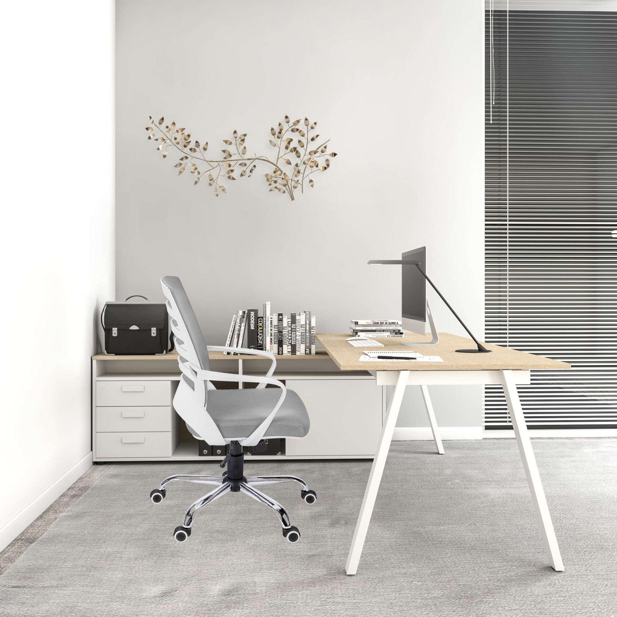 Measuring 39 inches in height, 24.25 inches in width, and 24 inches in depth, this chair is designed for comfort. The plush foam cushioning provides a soft seating experience, allowing you to relax and unwind after a long day. Its stylish white and grey color scheme adds a touch of modern elegance to your space, breaking the monotony of traditional office furniture.